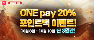 [용칼이키우기] One pay 20% 포인트백 이벤트!2025-10-08 ~ 2025-10-10